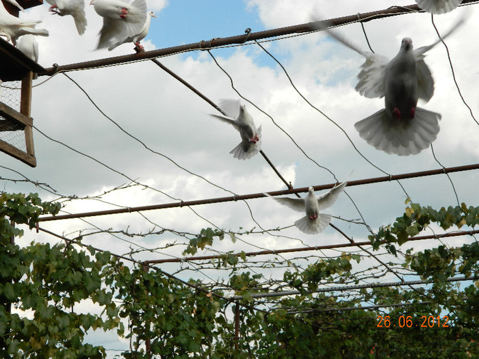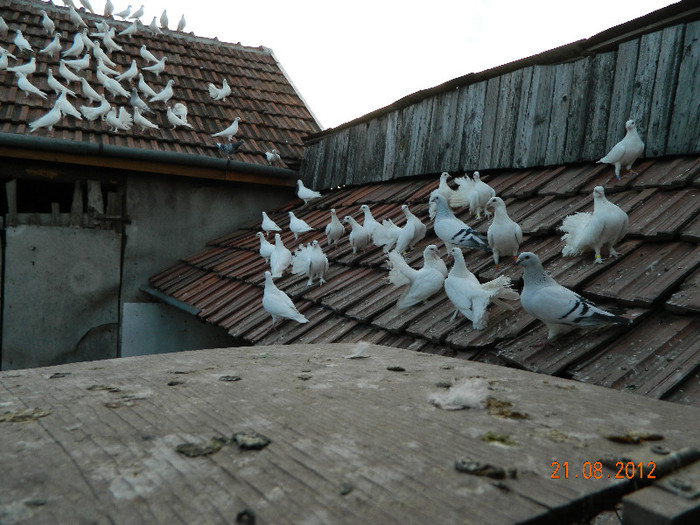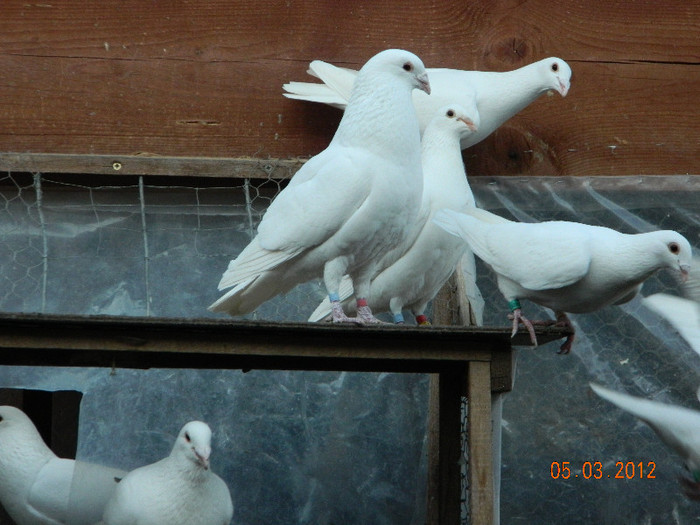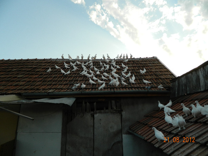 Scot spre vanzare 40 de porumbei Voiajori Albi, pret: 20-25 lei/bucata, la doua perechi comandate al cincelea este bonus.